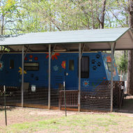 The campground was dotted with cute themed little cabins and RV options for reservation and let me tell you, had we not had the motorhome, we would have loved a week in them as well. They were all themed and named and I could not wait to snap pics of my favorite area's of the park.